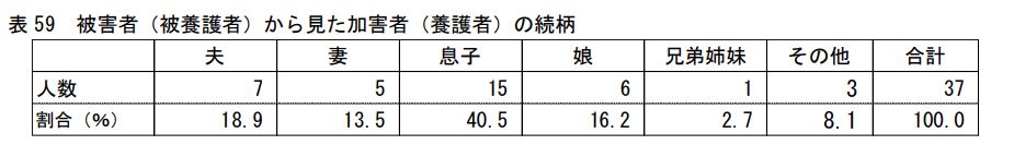 また、興味深いのは、加害者の続柄が配偶者よりも息子・娘など子どもの割合が多いことです。