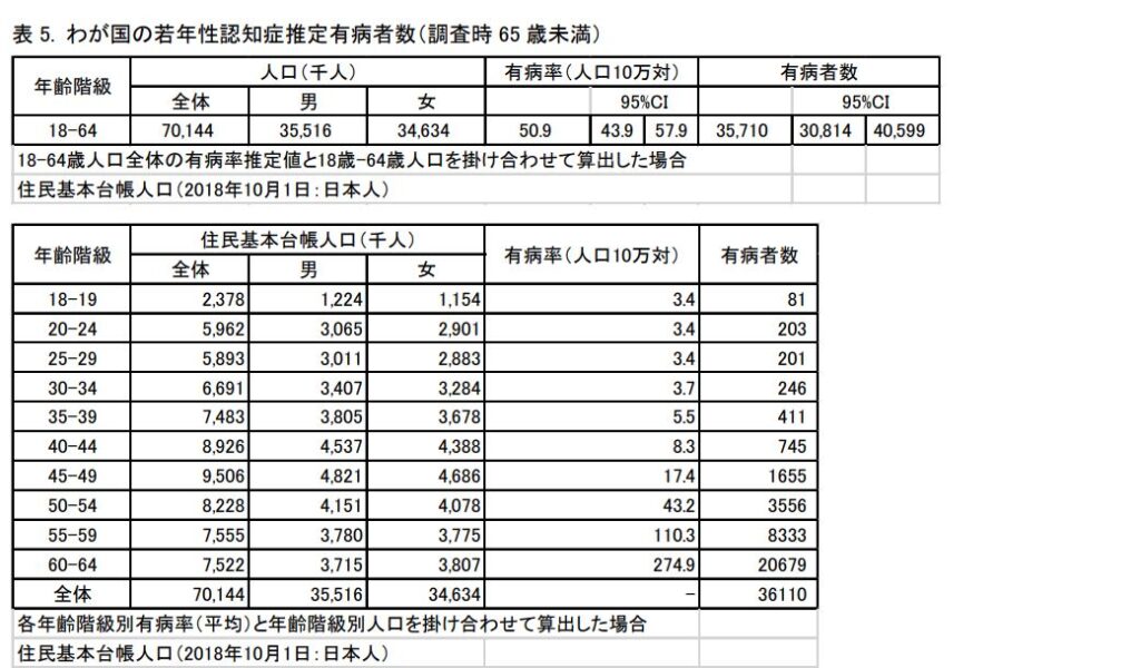 出典:若年性認知症の有病率・生活実態把握と多元的データ共有システム|地方独立行政法人東京都健康長寿医療センター・東京都健康長寿医療センター研究所