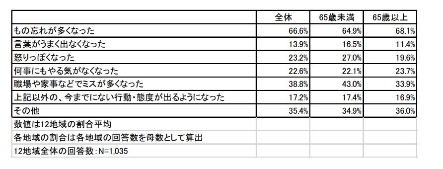 日本医療研究開発機構(AMED)が実施した若年性認知症の調査では、最初に『若年性認知症かもしれない』と疑った症状には、以下のようなものが挙げられています。