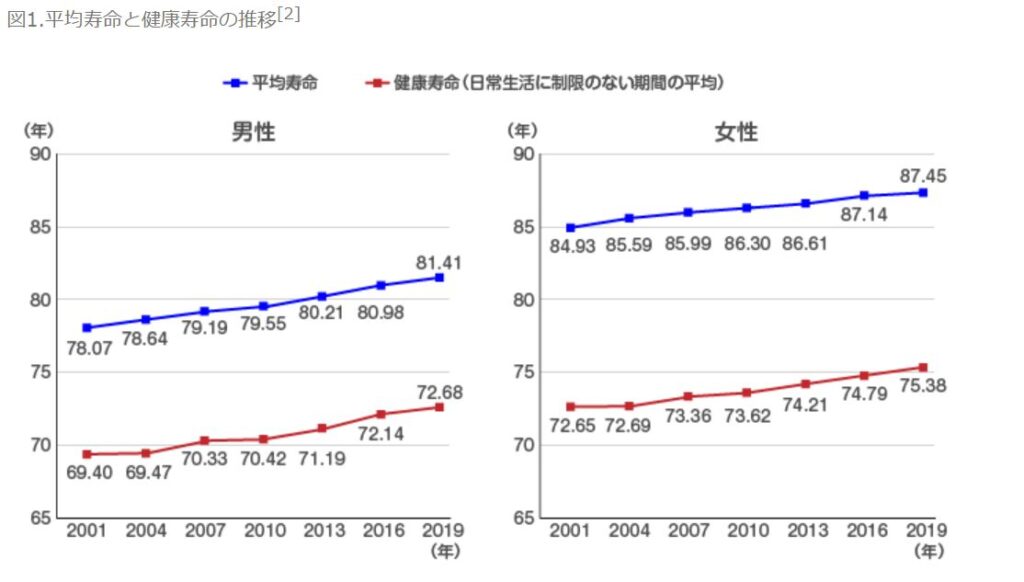 現在は国としても健康寿命を延ばすための施策が打ち出されているほど、『日常生活に制限がある期間』を少しでも少なくすることが注目されています。